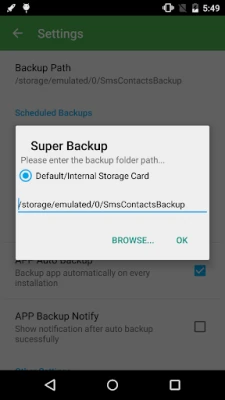 - Can change backup folder to external SD card