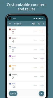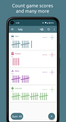 Better than a paper tally sheet. Score points of games, count visitors and people at your event, count drinks, training sessions and anything else.