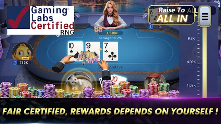 Guaranteed fairness: The random number generators used in all our games have obtained the random algorithm certification from the international authoritative organization GLI, ensuring that players get the best and fairest Texas Hold'em poker experience!