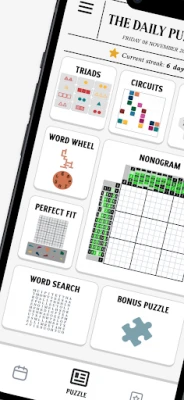 - Huge variety: word games (Cryptogram, Nine Letter, Word Search, Word Wheel), Sudoku, Nonograms, Logic Games, Triads, IQ Puzzles & more