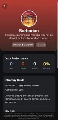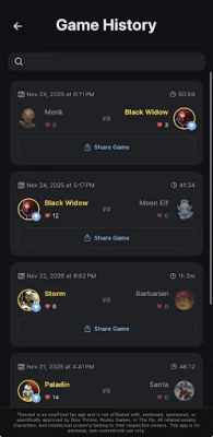 Track your wins, losses, and win rate automatically. View character-specific performance to see which heroes you dominate with. Browse your recent game history with detailed match information. Export your data for backup or manually log games played offline.