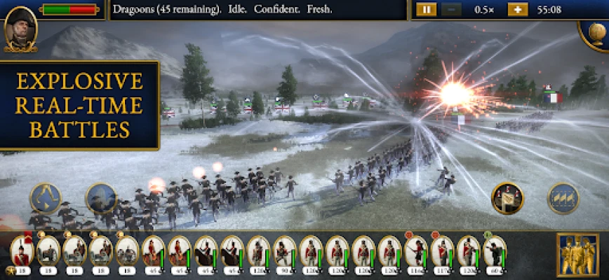 New particle effects and modern firepower make NAPOLEON the most explosive and visually impressive mobile Total War to date. All the DLC of the desktop game is included; 27 additional units, the Iberian Campaign of the Peninsula War, and the 1807 Battle of Friedland, Prussia.