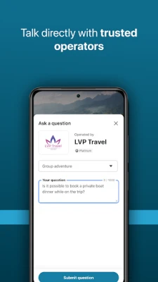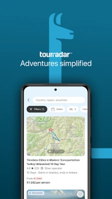 Let our tour operators be your travel planner. Each operator is an expert travel itinerary builder, so all you need to do is decide what type of tour you want (hiking, safari, bicycle, sailing, and more!), find the best price, and let them handle the rest. Everything you need for planning your perfect tour is just a tap away.