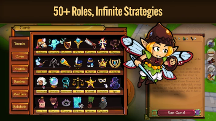 • Take on 50+ unique roles in online games with friends—like Sheriff, Jester, or Werewolf—each with special abilities and different ways to win online multiplayer games.