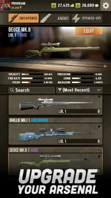 • Weapon Upgrades 🔫: Enhance your arsenal with powerful rifles, shotguns, and crossbows. Use coins and shards to upgrade weapons and increase stats like velocity, fire rate, and zoom.