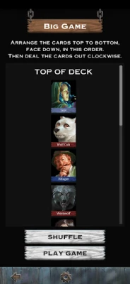 Build custom Ultimate Werewolf card decks with various deck attributes, such as the number of players, village/werewolf balance, length of game, moderator difficulty, role information, and specific roles. Save those decks in the app for future reference. Deal those cards to players, and then quickly scan the backs of the cards, the names of the players, and the faces of the players themselves into the app. Start the game, and the app will walk you through each day and night phase, including waking up each role at night, marking players who have been targeted by werewolves, eliminating players, and all kinds of other special abilities.