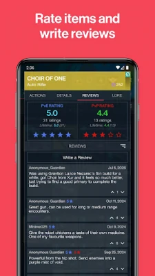 Community Reviews & Voting – See what others think about weapons and armor. Upvote the most helpful reviews and contribute to the Destiny 2 community.