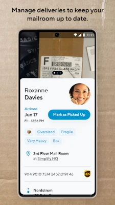 Streamline your mailroom with a simple app to scan packages, notify recipients and manage deliveries.