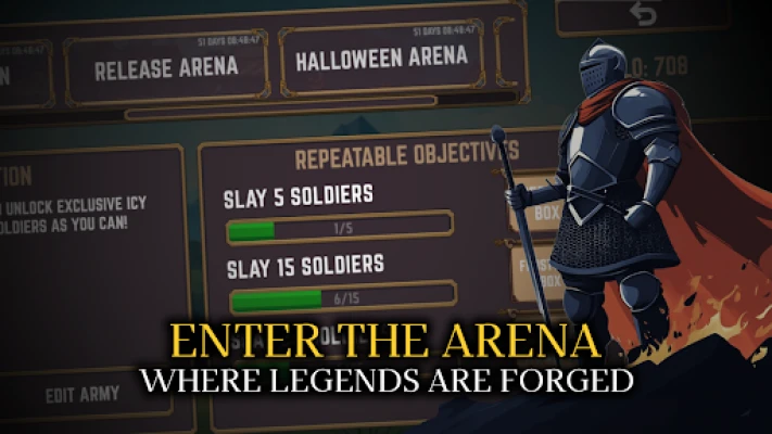 There is no blacksmithing here—you do not craft weapons, you earn them. Gear is acquired from loot chests, milestones, the in-game store, and special objectives. Assign each weapon, armor, and shield to your soldiers and find the setup that fits your tactics. Swap gear freely between matches, experiment with builds, and refine your lineup to perfection. Duplicate items allow multiple soldiers to use the same equipment when you own more than one copy. Testing combinations and learning matchups is how your army evolves from scrappy to superb.