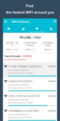 WiFi Analyzer helps you optimize your WiFi network by examining surrounding WiFi networks, measuring their signal strength as well as identifying crowded channels.