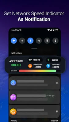 You can directly turn on/off Wi-Fi from the app. Also get the nearby Wi-Fi network details. Check your connected Wi-Fi speed and performance. Save the Wi-Fi speed test history.