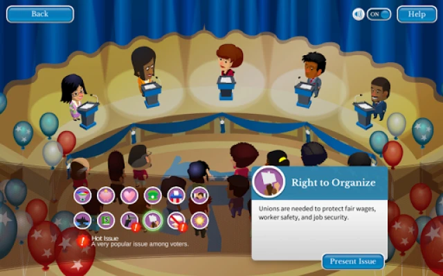 Played 3.5 million+ times on iCivics.org, this NEW and IMPROVED version of Win the White House includes all new ways to put your stamp on your campaign: