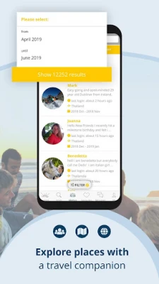 * See other travellers near your current location or in the area you are planning on travelling to