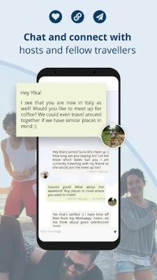 App for verified travellers only (download a separate app for hosts) Meet like minded travellers along the way, and find a travel buddy to plan your new adventures with. Join our unique travel community and share amazing stories and ideas!