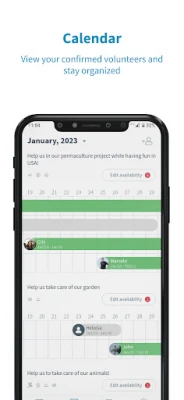 - Get organized with our calendar: see the confirmed volunteers for each of your positions and when each of them will be staying with you