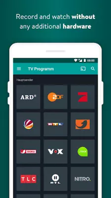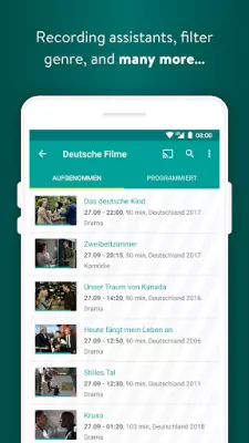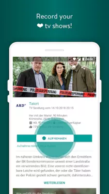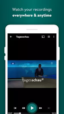 • German TV video recorder • Record TV shows with one click • HD High Definition streaming • Use the search to find your favorite show • Heimat-TV, news, sport, documentary, and many more • Simple to use TV library and program guide • Ready for your children • Worldwide usage • Chromecast support • Recording-Assistants for automatic series, genres, etc recording • And many more